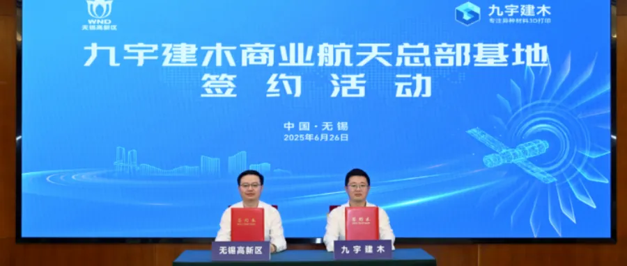 2025年6月,九宇建木商业航天总部基地签约落地无锡高新区,九宇建木商业航天总部基地项目将打造集DED金属3D打印技术开发、新材料、新工艺、新设备及零部件制造为一体的商业航天总部基地。