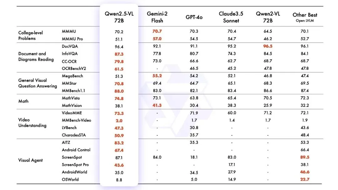 4、1月:阿里云通义千问开源全新的视觉模型Qwen2.5-VL,推出3B、7B和72B三个尺寸版本。