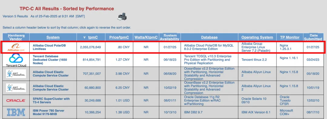 6、2月26日:阿里云PolarDB云原生数据库登顶全球数据库性能及性价比排行榜,以每分钟20.55亿笔交易(tpmC)和单位成本0.8元人民币(price/tpmC)的成绩成功刷新TPC-C性能和性价比双榜的世界纪录。