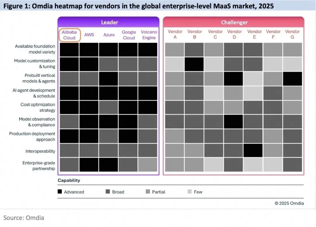 28、12月18日:国际市场研究机构Omdia发布《2025年全球企业级MaaS市场分析》,阿里云获评全球领导者,并在5大维度上获得最高评级,为中国第一。