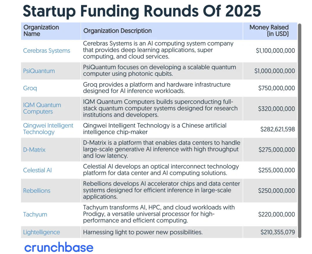 为了更全面地了解情况,在下面列出了 2025 年 10 家获得最大一笔半导体相关融资的公司。