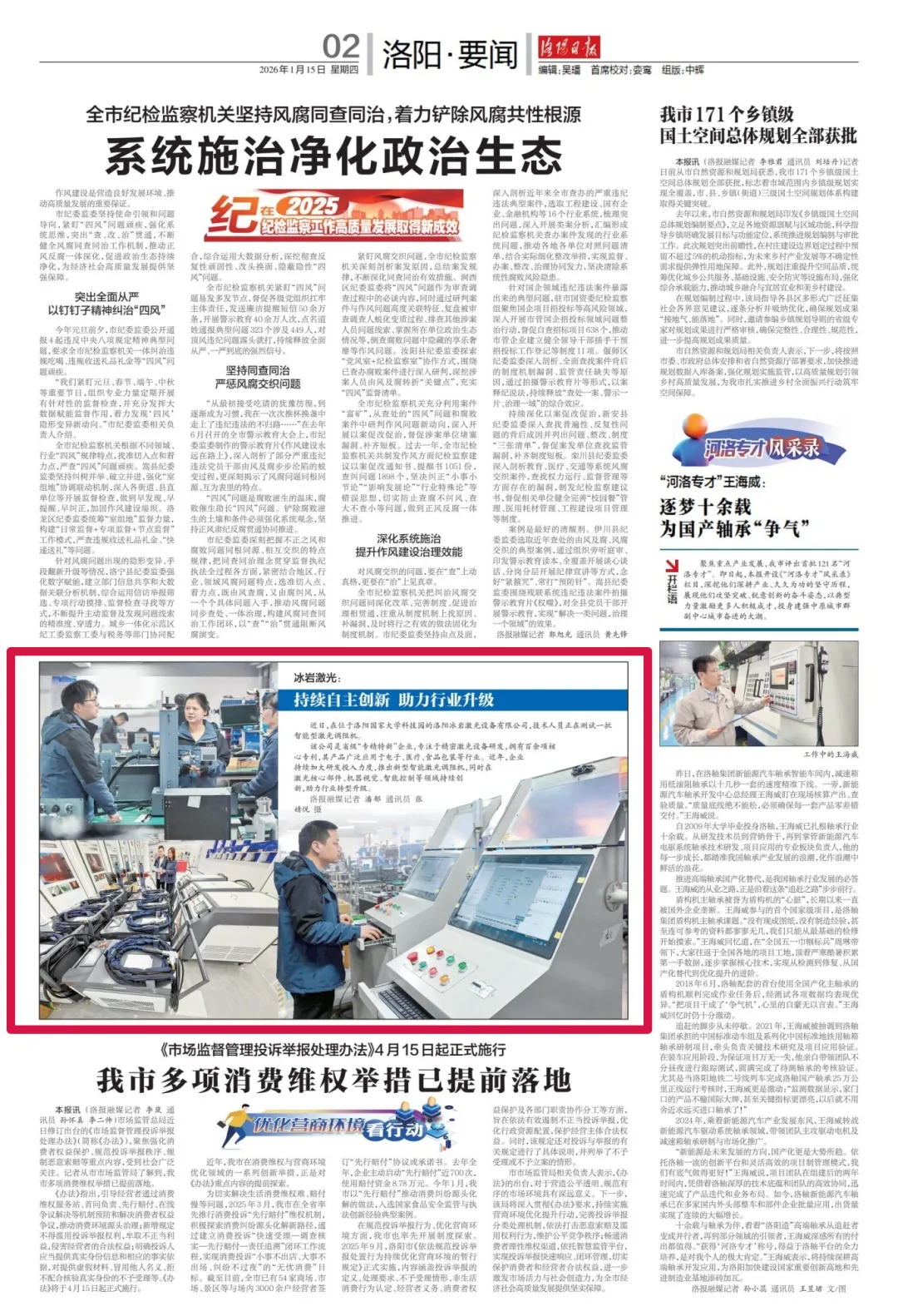 今天洛阳日报关注洛阳冰岩激光设备有限公司