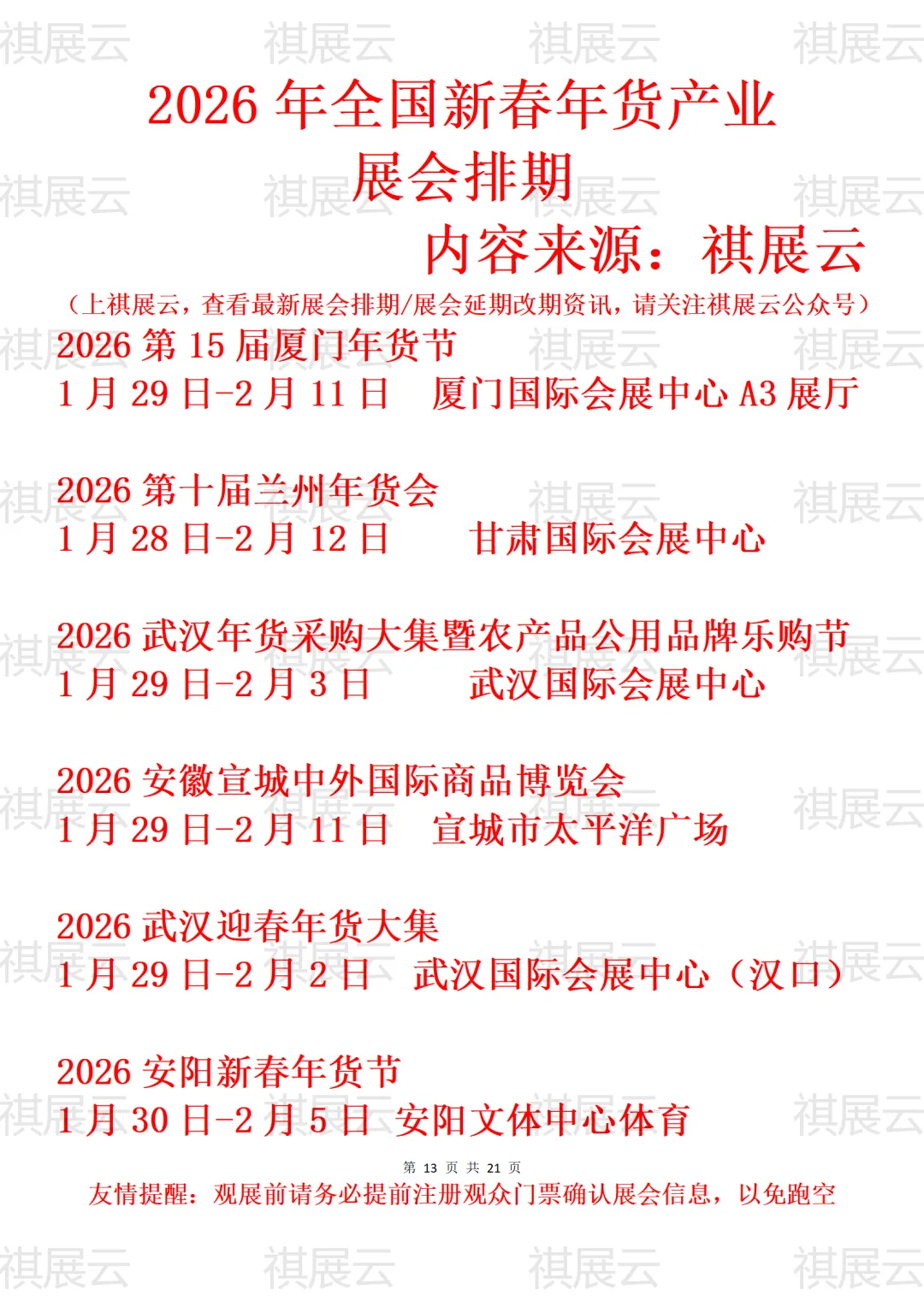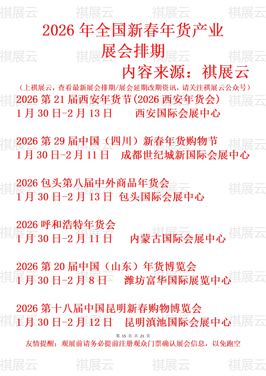 会展资讯丨2026年1月成都市成都世纪城新国际会展中心/中国天府农博园/天府国际会议中心重要会展活动预报