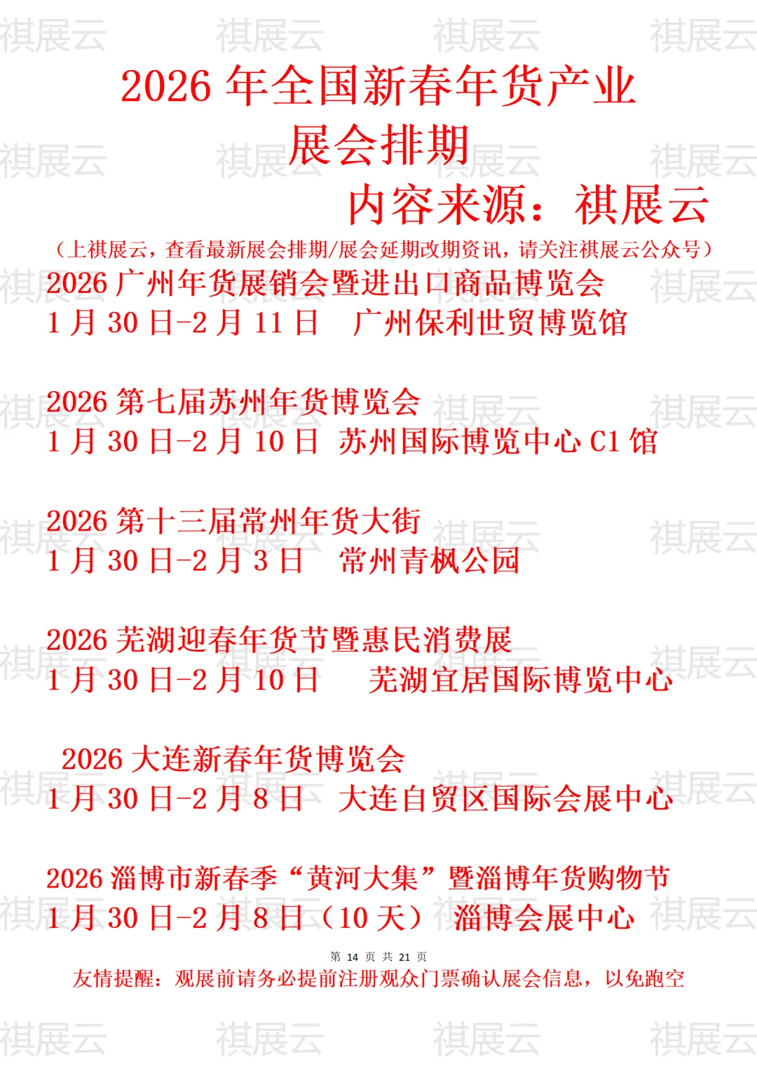 会展资讯丨广州保利世贸博览馆/海珠国际会展中心/广州国际采购中心2026年1月展会排期