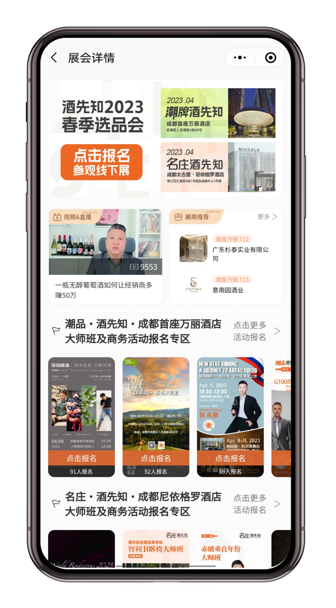 2023年4月,由百高文化创新打造的葡萄酒、精酿啤酒头部品牌高地——“潮牌·酒先知”将亮相成都首座万丽酒店,云集全球近400家葡萄酒、啤酒、烈酒品牌展商。