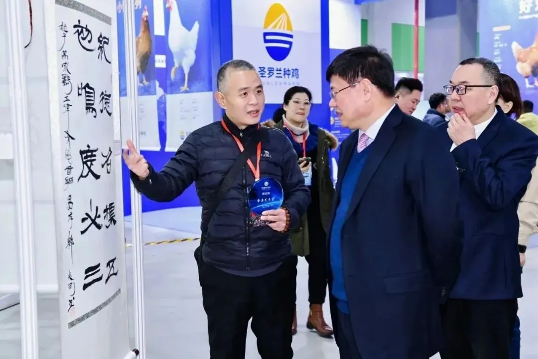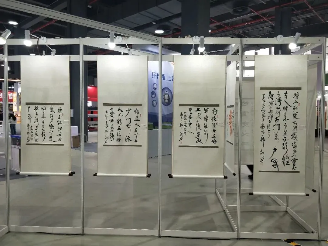 本届博览会的一个亮点是,特辟“艺术品展区”,荟萃文化产品、工艺品与书画艺术作品,融合产业与文化创意,为展会注入了独特的人文气息与艺术活力。作为博览会定向特邀的实力派艺术家,郑志刚博士在艺术品展区举办了专题书法展览。其基于“鸡文化、蛋文化”所创作的这批书法作品,既涵盖了草、行、隶、篆等多种书体,又在书写内容上对颜真卿、杜甫、苏东坡、朱元璋、唐伯虎等先贤名流的诗词名句进行了精心选择,书风或朴茂雄肆、或跌宕潇洒,受到现场各界嘉宾一致好评。