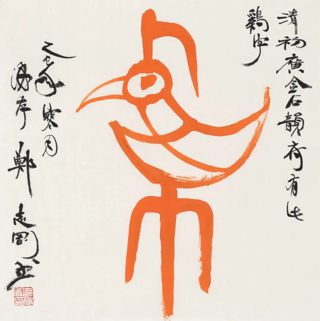 郑志刚书法作品 《广金石韵府~鸡》 50cm x 50cm 纸本设色 2025年