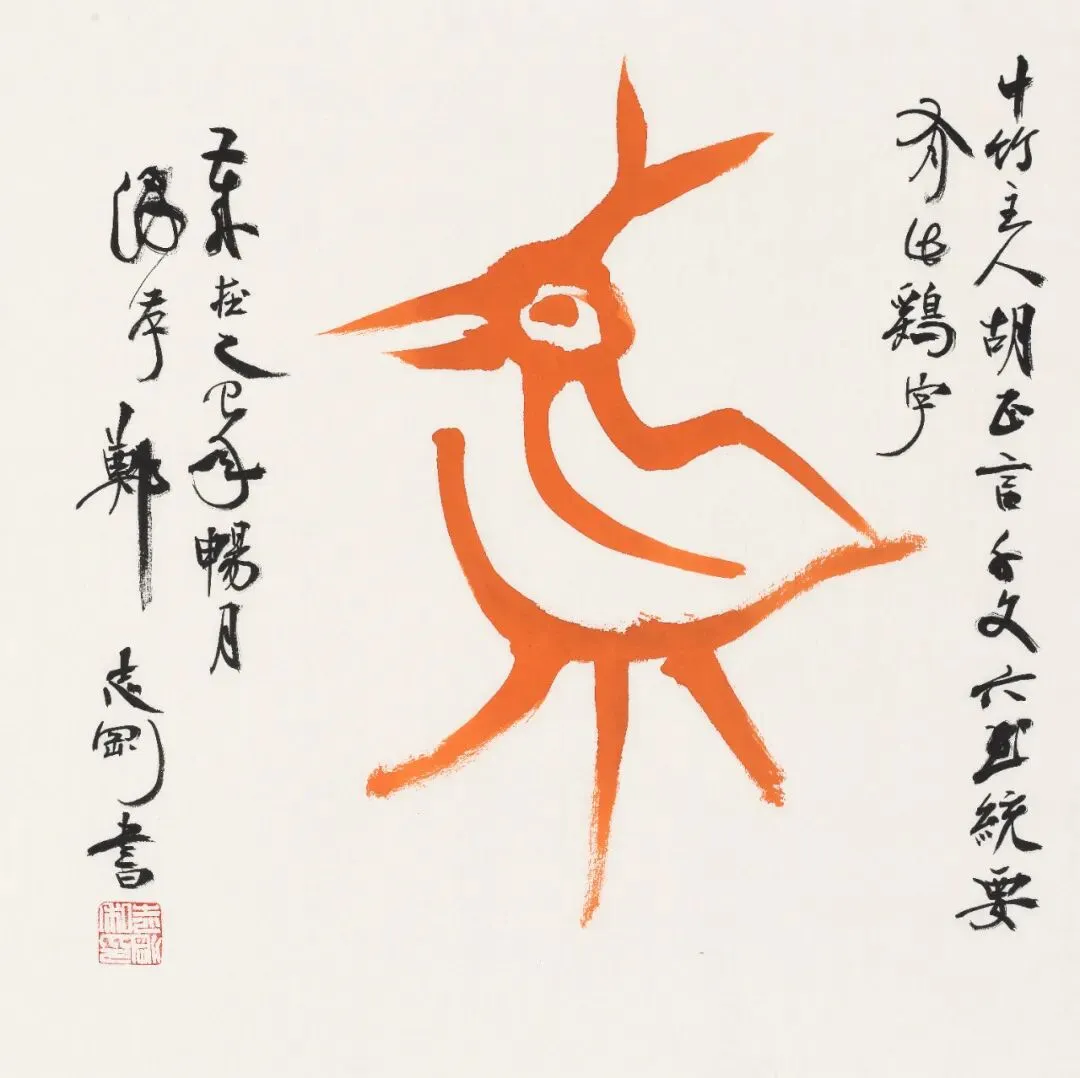 郑志刚书法作品 《胡正言~千文六书统要~鸡》 50cm x 50cm 纸本设色 2025年