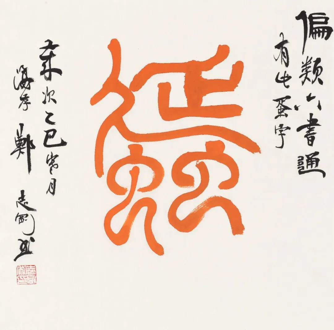 郑志刚书法作品 《偏类六书通~蛋》 50cm x 50cm 纸本设色 2025年