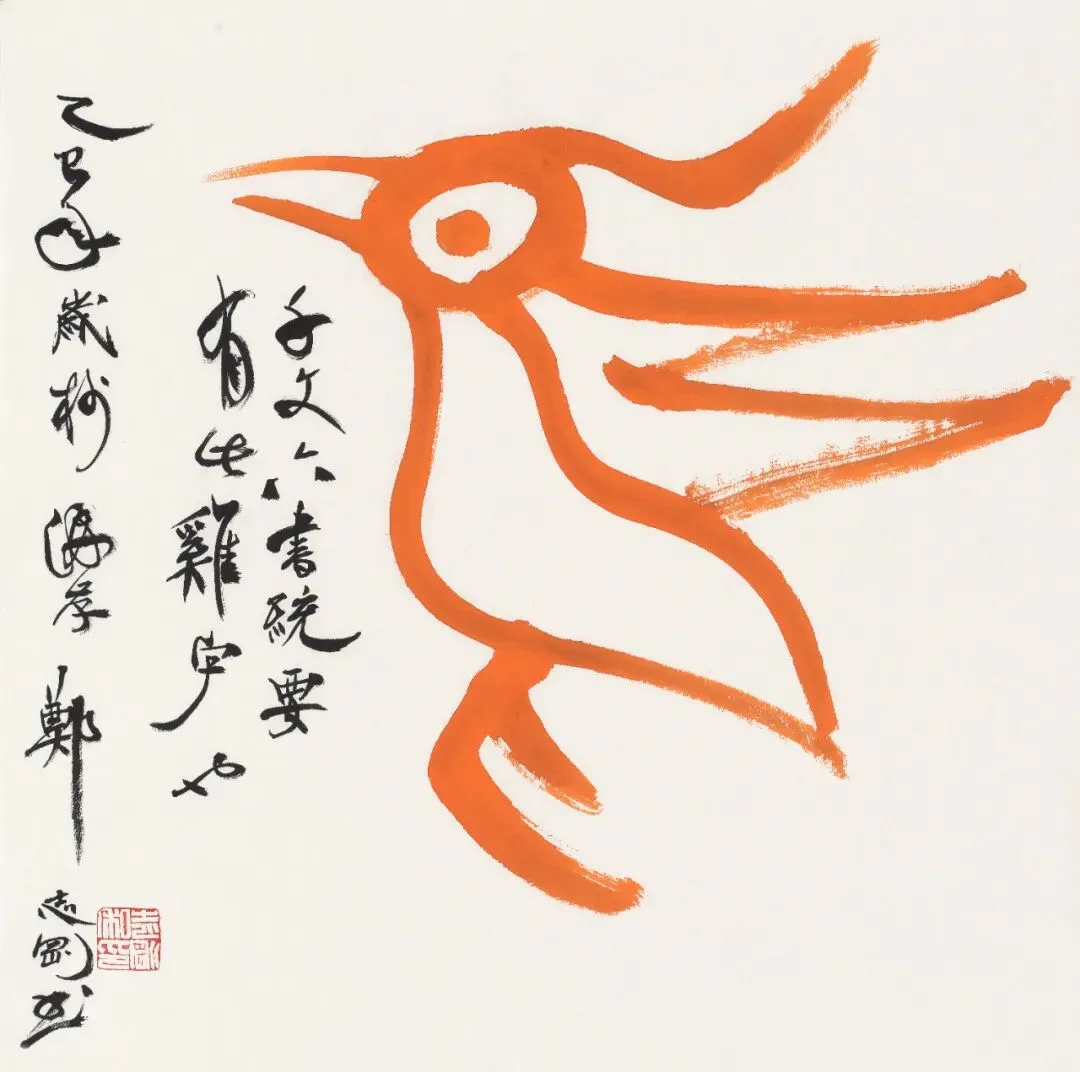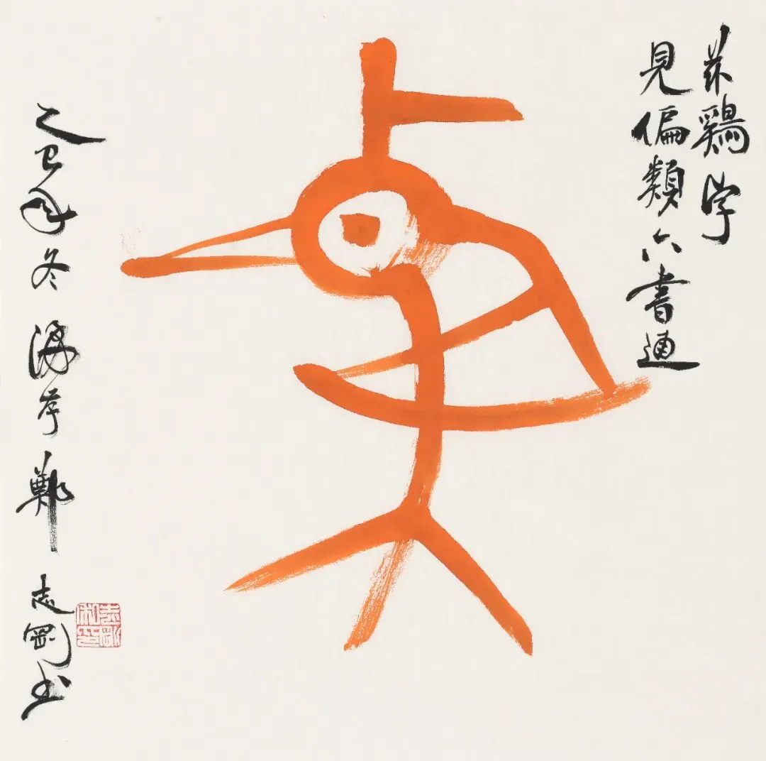 郑志刚书法作品 《偏类六书通~鸡》 50cm x 50cm 纸本设色 2025年