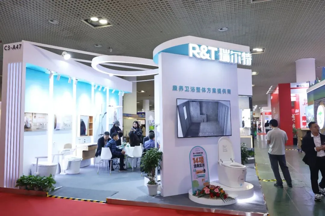 瑞尔特卫浴现场展示装配式卫浴空间、智能座便器、浴室柜等康养产品,满足银发群体洗护的各类需求。