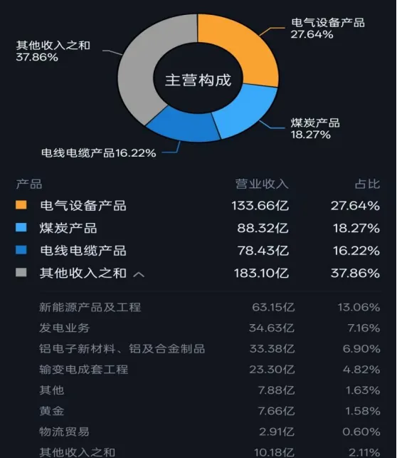 发电业务(7.16%):以火电、水电为主,配套自身煤炭资源,形成 “煤 - 电 - 输” 一体化布局。铝电子新材料(6.90%):布局高纯铝、电子铝箔,供应新能源电池、电子元器件领域,是业务多元化的补充。