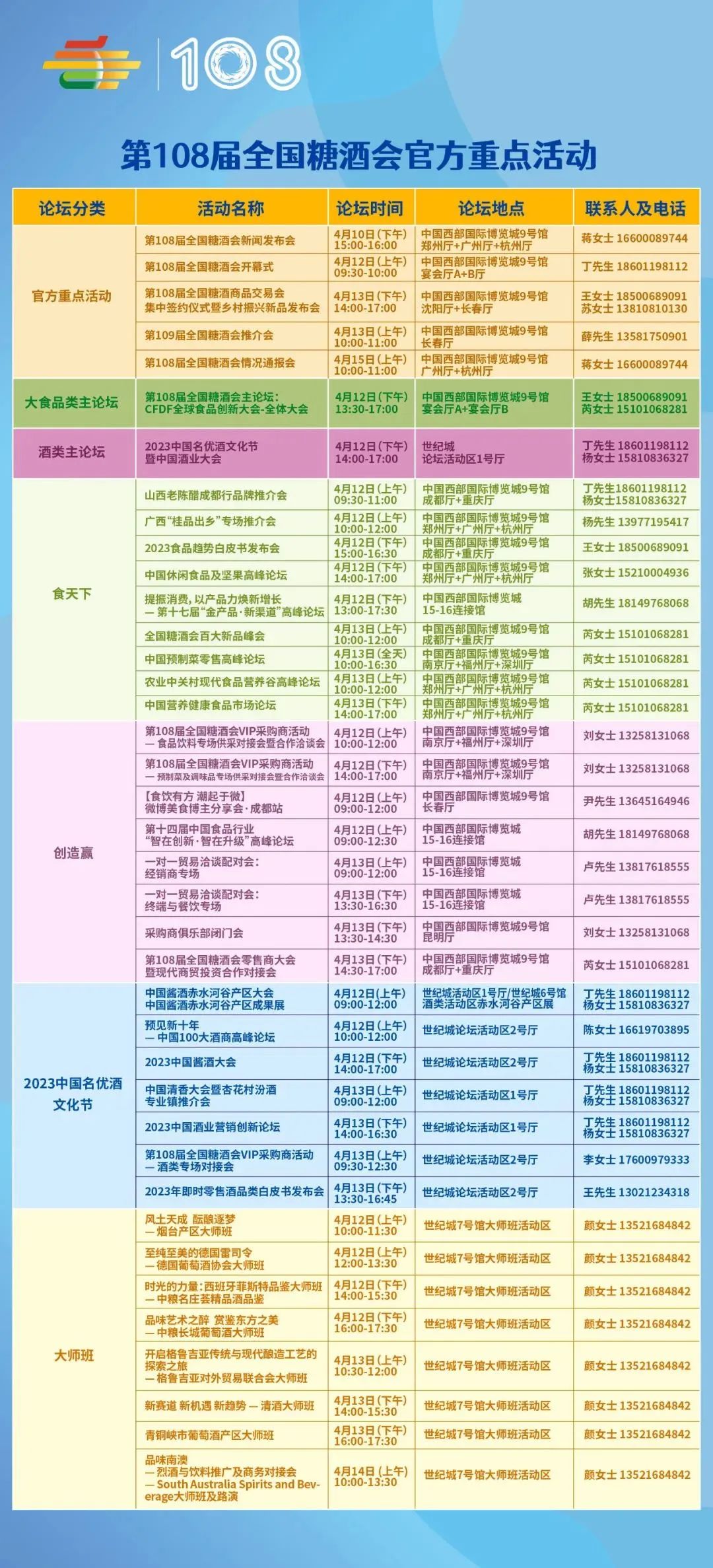 根据组委会消息,第108届全国糖酒商品交易会将于2023年4月12-14日在成都盛大举办,糖酒会采取按时间两段式“酒店+主展”参展的模式。