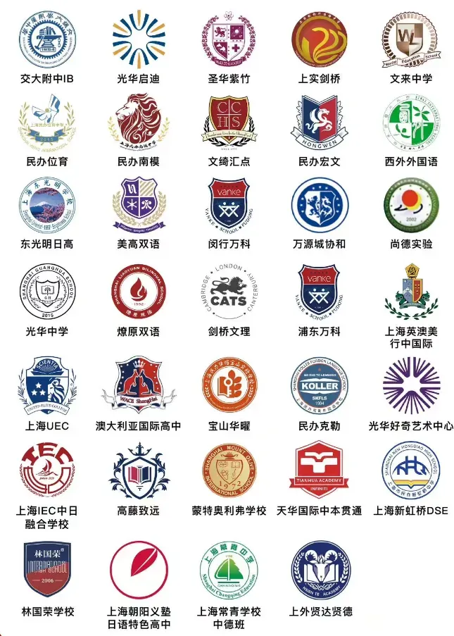 交大附中IB、光华启迪、圣华紫竹、上实剑桥、文来中学、民办位育、民办南模、文琦汇点、民办宏文、西外外国语、东光明日高、美高双语、闵行万科、万源城协和、尚德实验、光华中学、燎原双语、剑桥文理、浦东万科、上海英澳美、上中国际、上海UEC、澳大利亚国际高中、宝山华曜、民办克勒、光华奇瓷艺术中心、上海IEC中日、高藤致远、蒙特奥利弗学校、天华国际中本贯通、上海新虹桥DSE、林国荣学校、上海朝阳义塾、上海常青学校、上外贤达等。