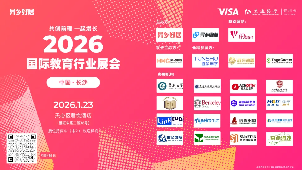 2026国际教育行业展会-长沙站是异乡好居发起,携手全球发卡量超过40亿张的VISA共同举办;旨在搭建国际教育行业同仁之间相互交流与合作的平台,促进国际教育行业的高效沟通与发展。我们将给参会企业共享我司每年花费4500万维护的近2万国际教育及出入境顾问、文案及国际教育产业链上下游人士资源。活动时间:2026年1月23日下午:13:30-17:00活动地点:长沙市天心区君悦酒店热诚欢迎大家的光临~#异乡好居1.23国际教育行业展会#感谢联合主方&会员伙伴支持【伯克利】英国伦敦、外伦敦、伯明翰、巴斯房地产项目