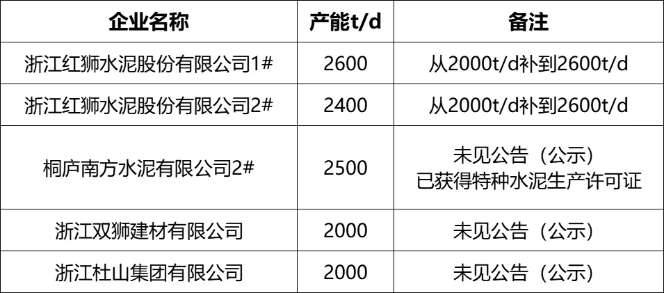 截至24年底,浙江省共计有2000—2500吨熟料生产线19条,目前仅有3条线未发布产能置换信息。至此调整,浙江省3000t/d以下熟料线(特种水泥生产线除外),只剩下如下5条:
