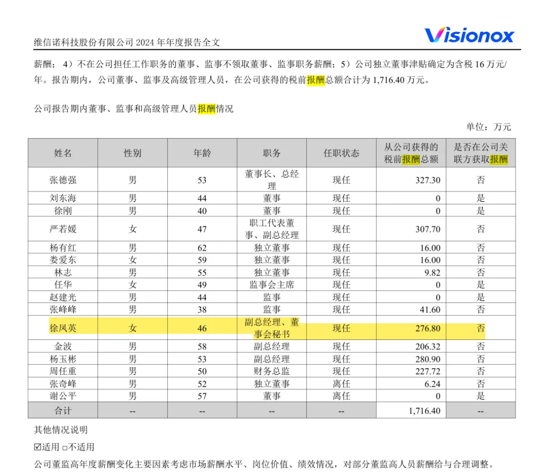 徐凤英女士,中国国籍,无境外居留权。1979年出生,博士学历。毕业于清华大学物理化学专业。历任北京维信诺科技有限公司总经理助理、北京维信诺光电技术有限公司副总经理,昆山国显光电有限公司总裁助理、维信诺学院院长。现任维信诺副总经理、董事会秘书。