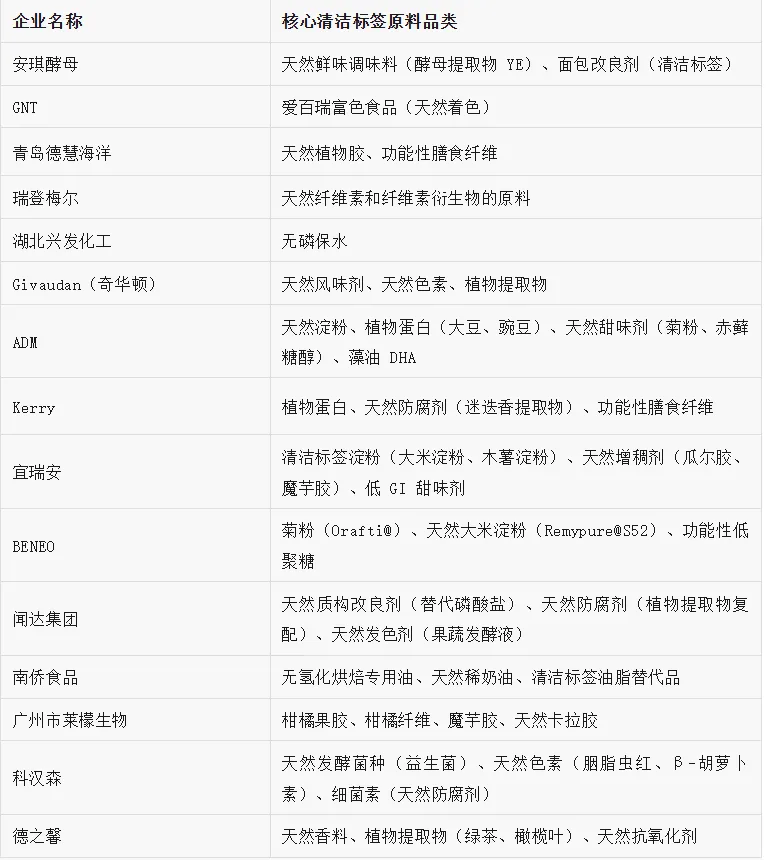 首先,天然配料创新会是核心方向。黑樱桃叶提取物、甜菜根提取物这类植物提取物,还有大米淀粉、菊粉等,都会越来越多地替代人工添加剂,在保证功能的同时又符合天然属性。例如,酵母提取物YE作为天然鲜味物质,未来可能逐步替代味精和I+G,现在已经在欧盟、北美等地区的调味品中广泛应用。下图展示了一些提供清洁标签配料的企业。