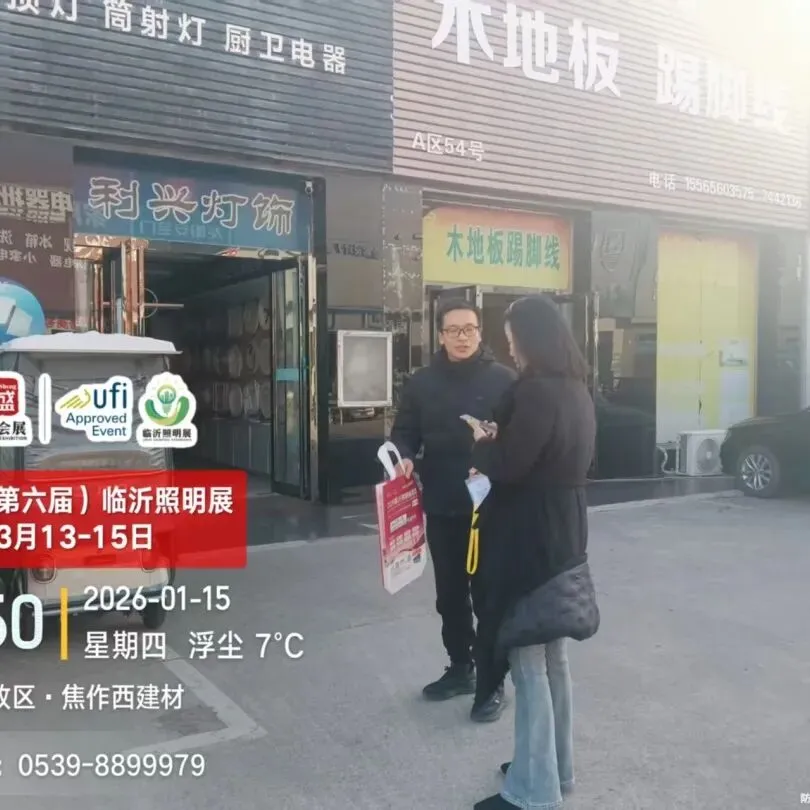 组委会工作人员在宣传邀约过程中,积极走进照明灯具终端市场,通过分发邀请函、面对面洽谈等方式展开邀约工作,全方位多角度介绍2026(第六届)临沂照明展览会的亮点及优势,确保展会信息触达更多观众。