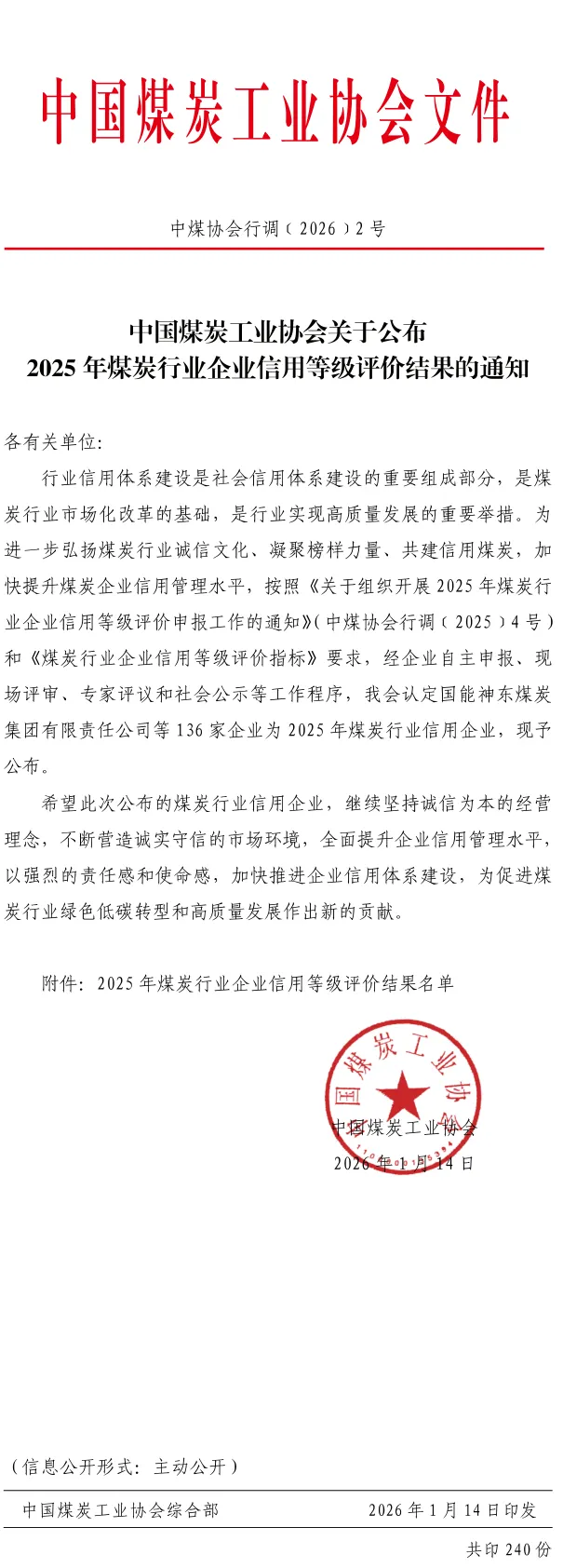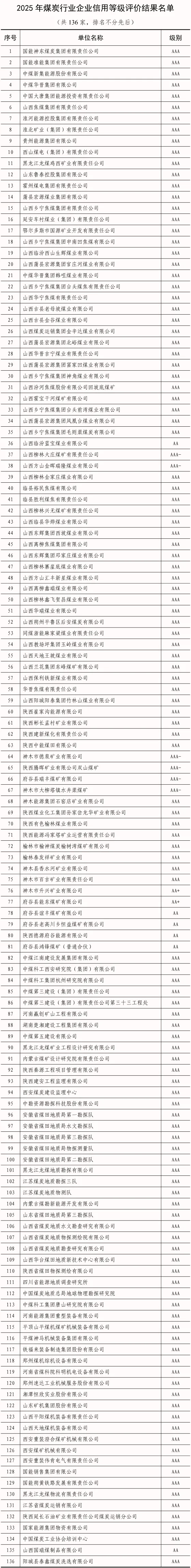 你的企业上榜了吗?2025 煤炭行业信用等级评价结果公布