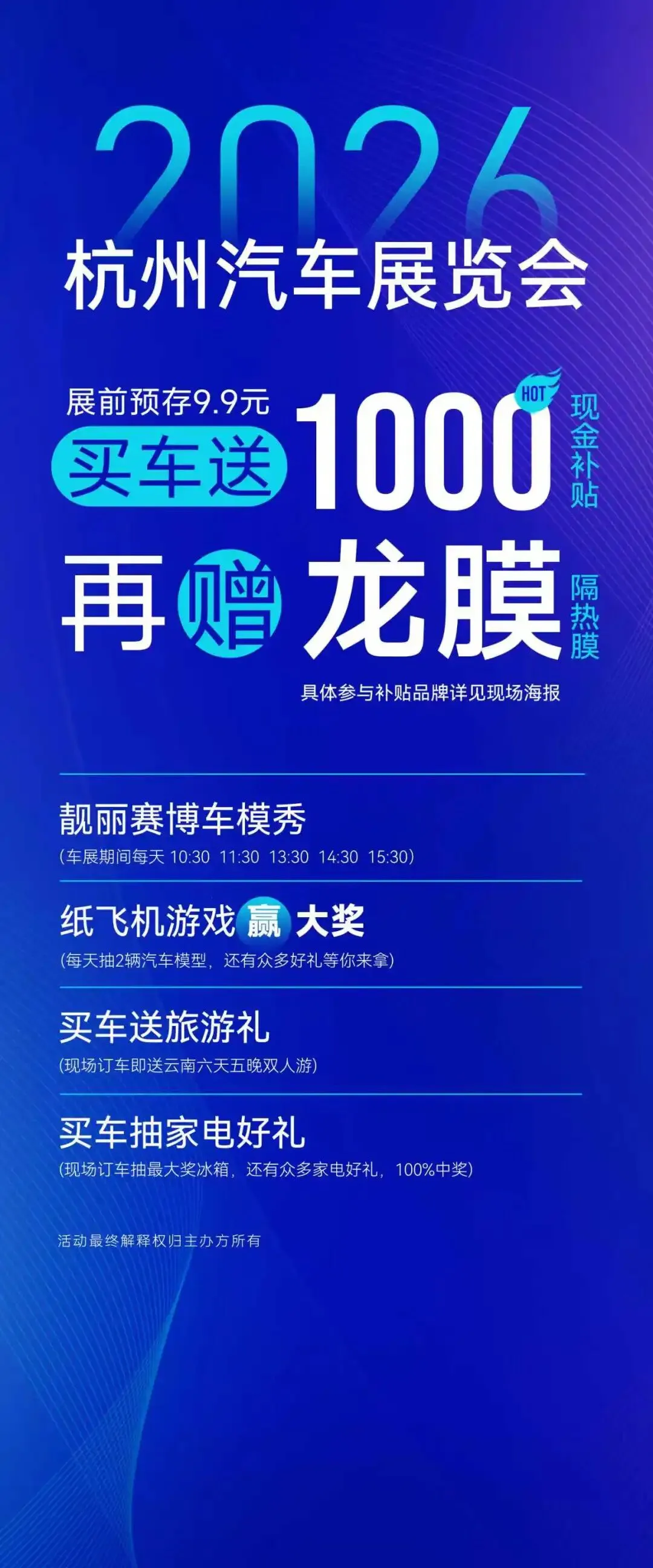 最后一天预存,买车补1000,这补贴太实在了!(具体参与品牌见展会时公布)