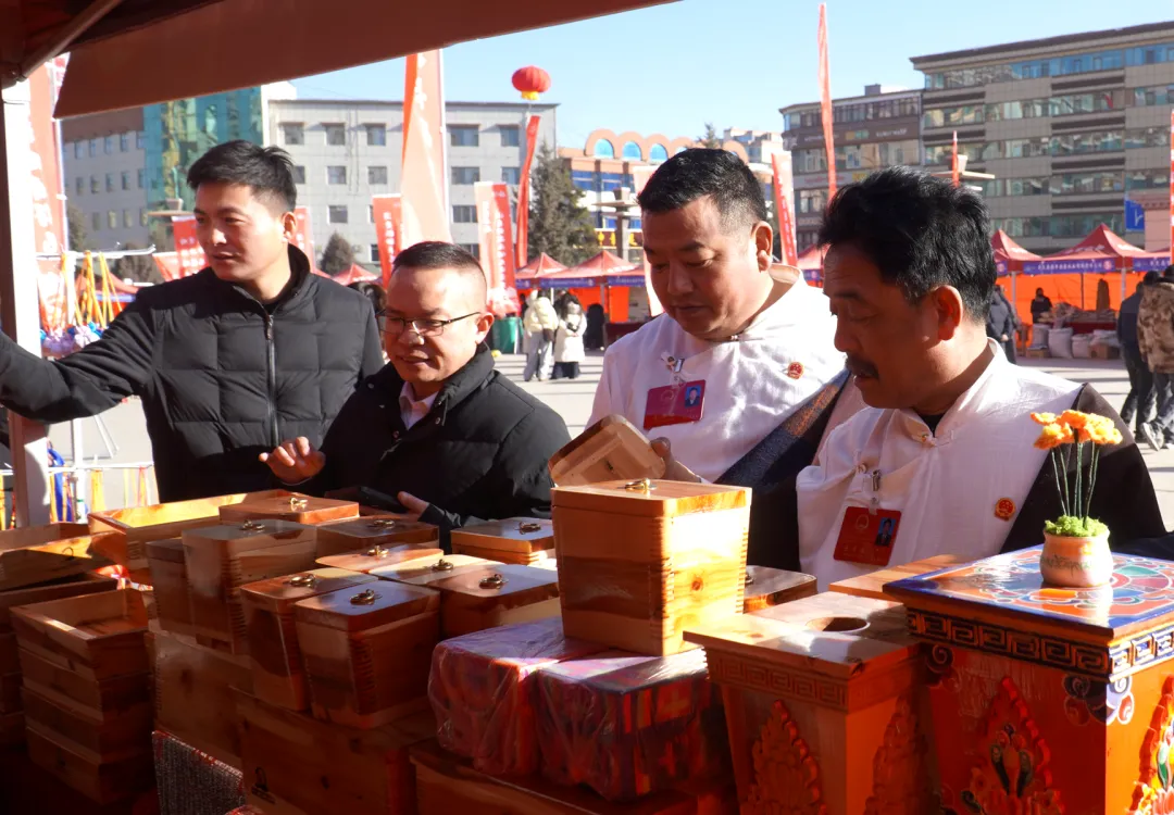 展销现场暖意融融、人头攒动,参展企业带来的特色展品琳琅满目,全方位展现卓尼“牛羊菜药菌+青稞”特色产业集群成果。作为“中国黑木耳之乡”,入选全国名特优新农产品名录的卓尼黑木耳凭借肥厚弹韧的品质成为“爆款”,菌汤包、干制木耳供不应求;党参、当归等中藏药材,色泽金黄的高原蜂蜜,以及洮砚、木雕、藏香等非遗文创产品同步亮相,全方位展现了卓尼“从田间到车间、从生态到特色”的产业发展脉络。