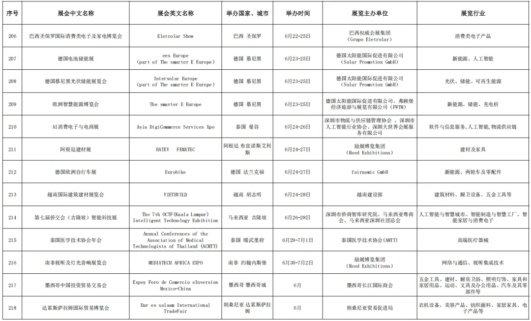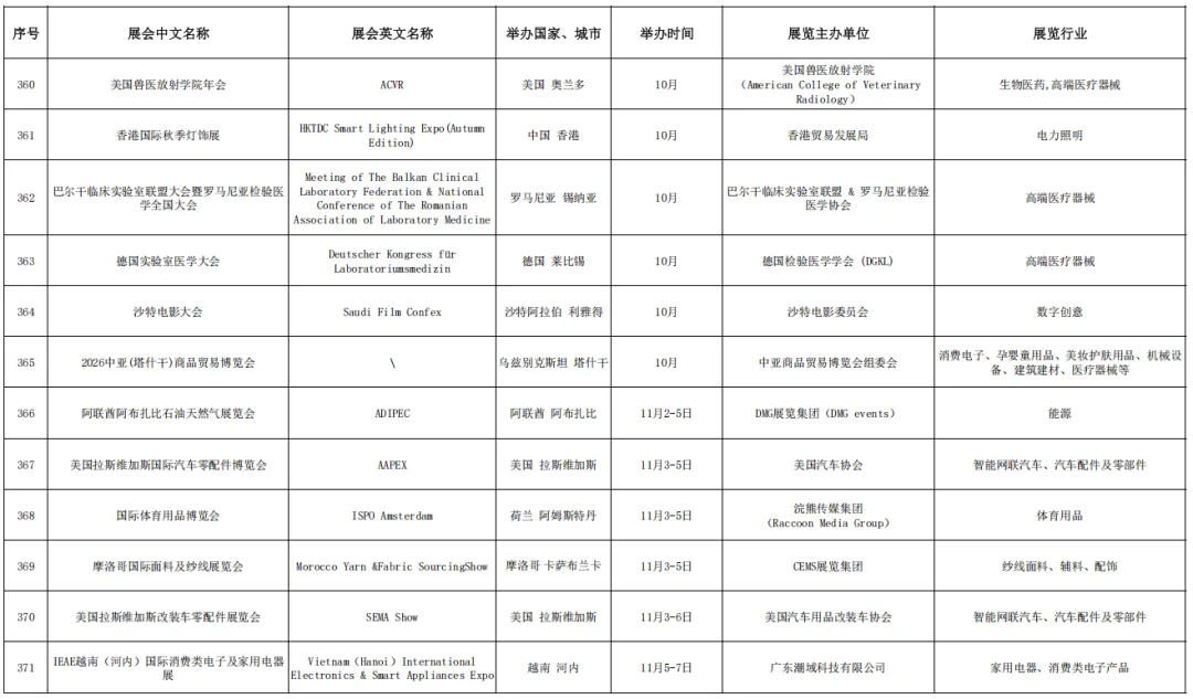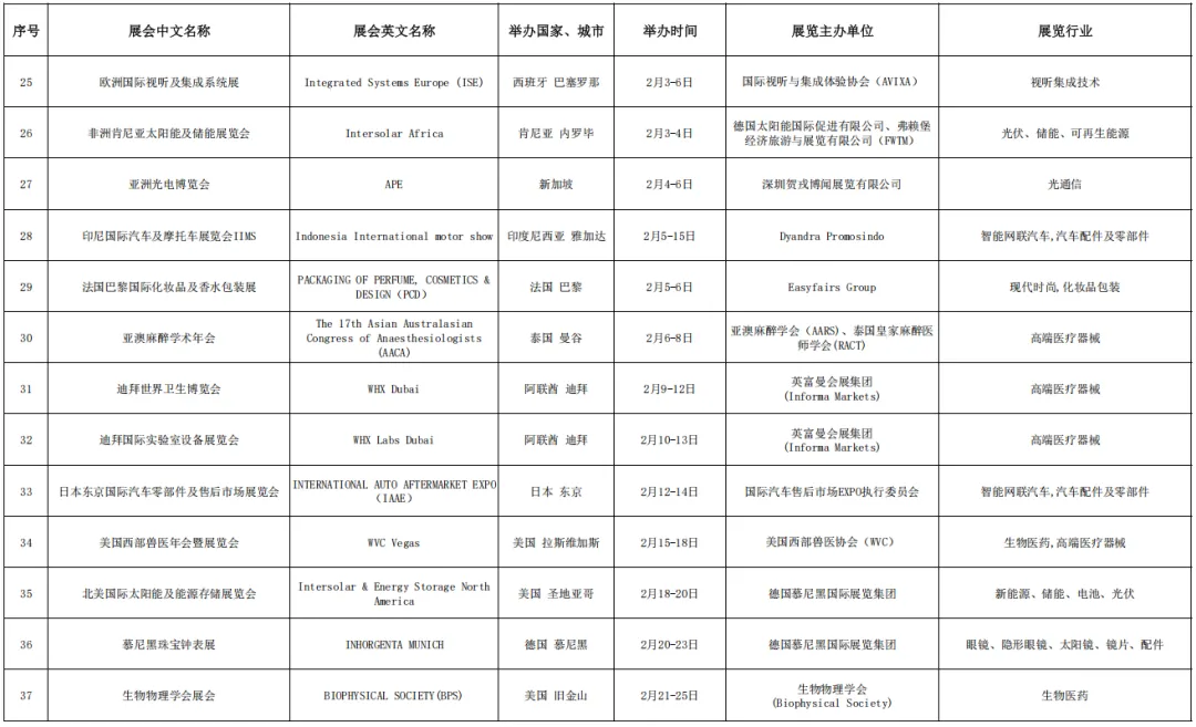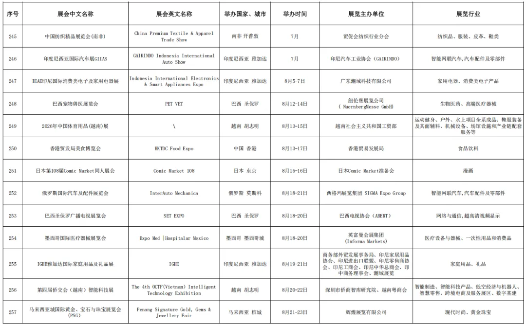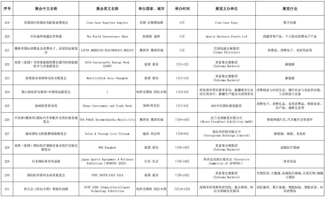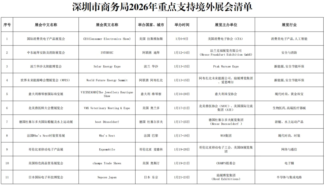 深圳市商务局关于发布2026年重点支持境外展会清单的通知