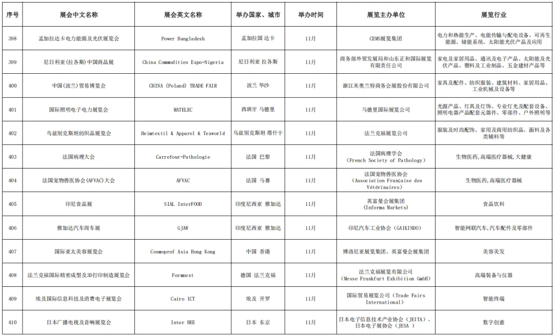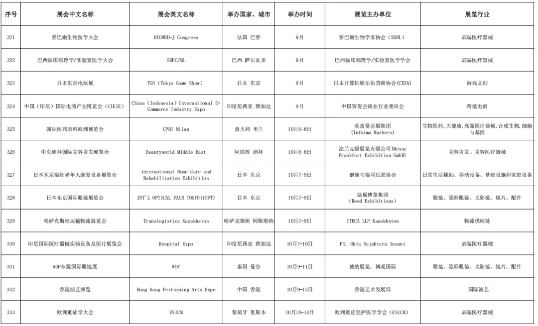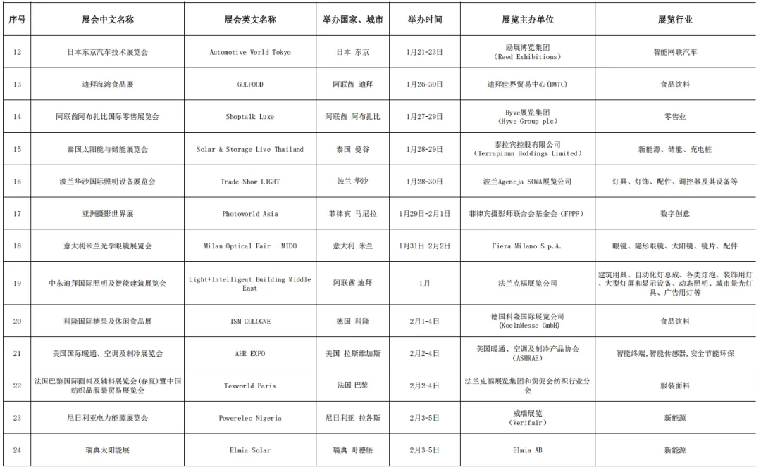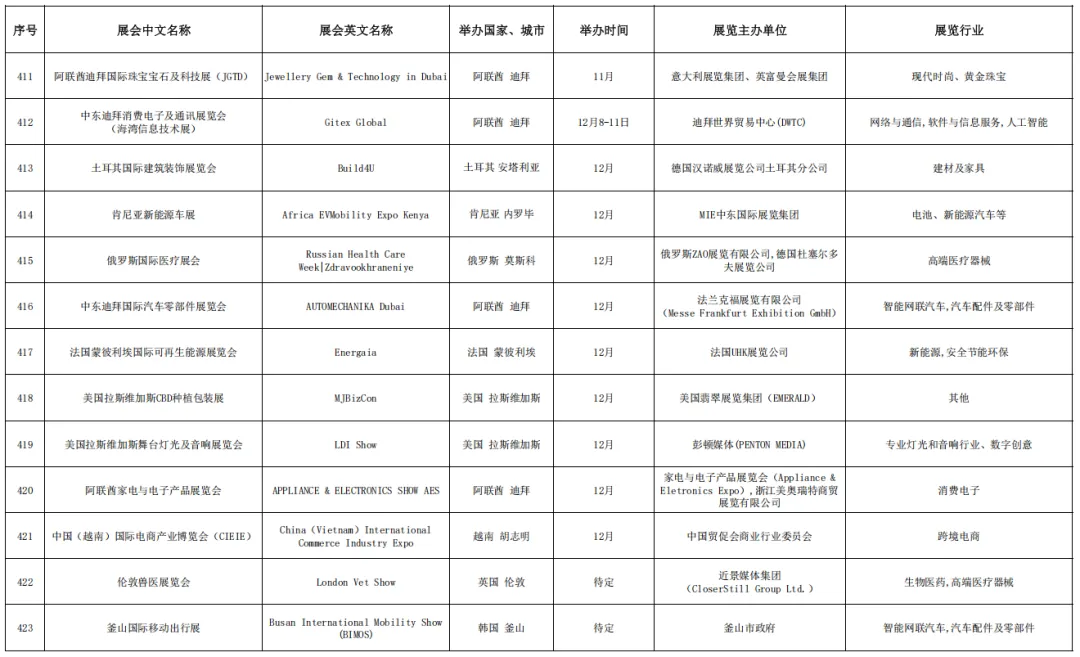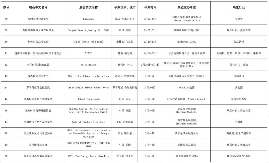 深圳市商务局关于发布2026年重点支持境外展会清单的通知