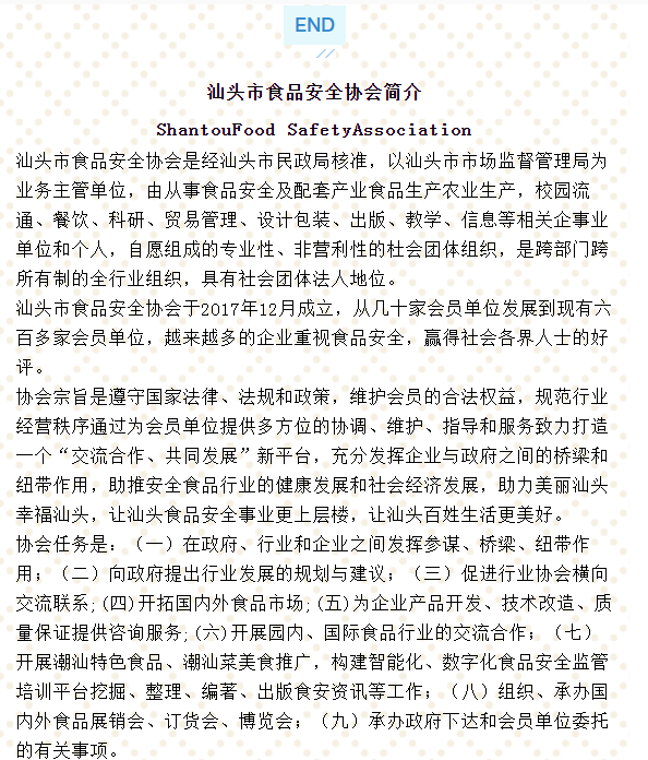 4月7日-11日,五天的酒店展将在四川省成都市新华宾馆武担楼3楼雪域厅1举办,从会员单位和参展企业的美好期许中,已经感受到了糖酒会的活力和热情,大家美好的期待,传递着食品行业信心和力量,汕头市食品安全协会诚挚地邀请广大朋友们参加此次展会,同时感谢此次合作提供展位的汕头市灿阳科技实业有限公司,相信在接下来几天吸引更多的客商前来洽谈,赢得更多的机遇,最后祝各参展企业在此次展会生意兴隆!