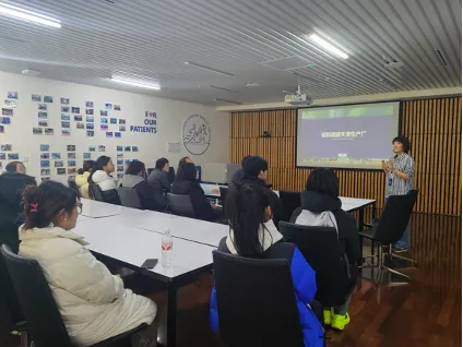 “驱动改变,战胜严重慢性疾病”—— 一踏入企业,诺和诺德这一充满温度与力量的核心企业文化便牢牢吸引了学生们的注意力。在企业导师的生动讲解中,学生们系统了解企业的发展历程、核心使命以及在中国市场的责任担当。企导师还详细介绍了诺和诺德天津生产厂的生产产品体系、组织架构设置、岗位职能分工等内容,为学生们搭建起 “行业 — 企业— 岗位” 的认知框架,助力他们清晰规划职业发展路径。