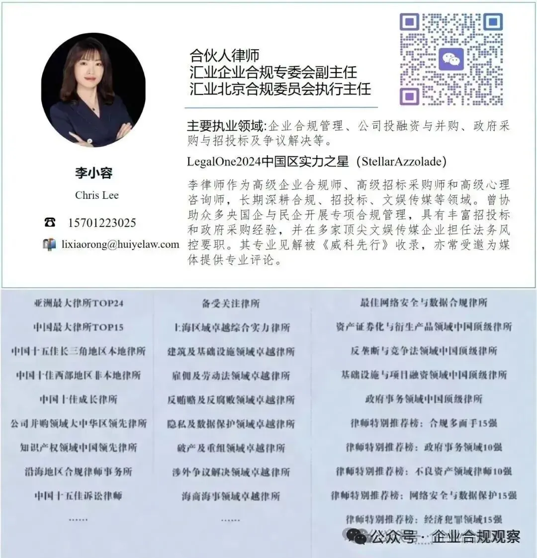 声明:本文内容首发自“企业合规观察”公众号,如需转载,请注明出处。