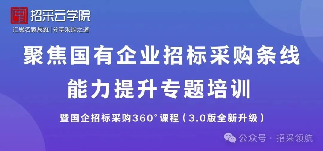 聚焦国有企业招标采购条线能力提升专题培训课程——国企招标采购360°系列课程(3.0版全新升级)