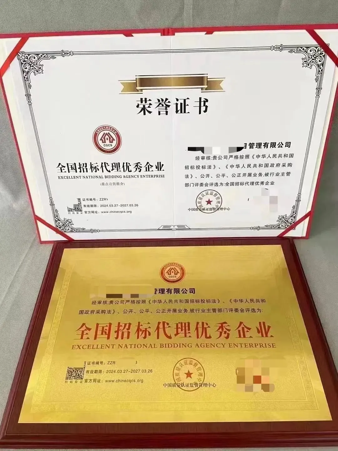 企业荣誉(一本证书+一牌匾):