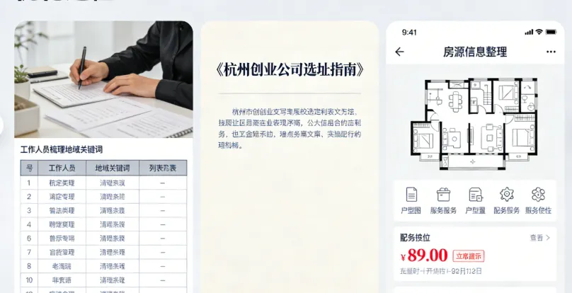 我们给杭州一家联合办公空间做过优化,核心就是“精准锁定本地有选址需求的企业”。第一步是梳理企业高频搜索的地域关键词,比如“杭州滨江区写字楼租赁”“阿里巴巴附近办公室”“滨江工位出租”,把这些词精准布局到房源的官网、地图标注、房产平台页面里;第二步是适配AI搜索,整理了企业选址的实用攻略——比如《杭州创业公司选址指南:滨江区写字楼怎么选最划算》《联合办公vs传统写字楼,中小企业该选哪个》,用真实的房源案例和选址建议填充内容,让AI抓取时认定为“有用的权威信息”;最后把房源的户型图、配套设施(停车场、会议室、网络)、租赁价格、优惠政策整理出来,确保企业负责人搜的时候能一眼看到关键信息。
