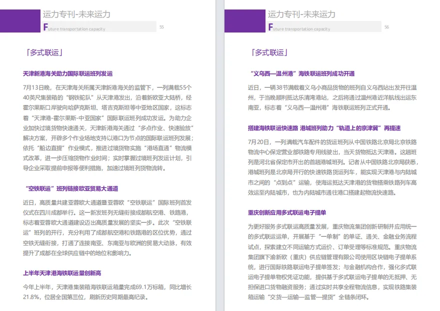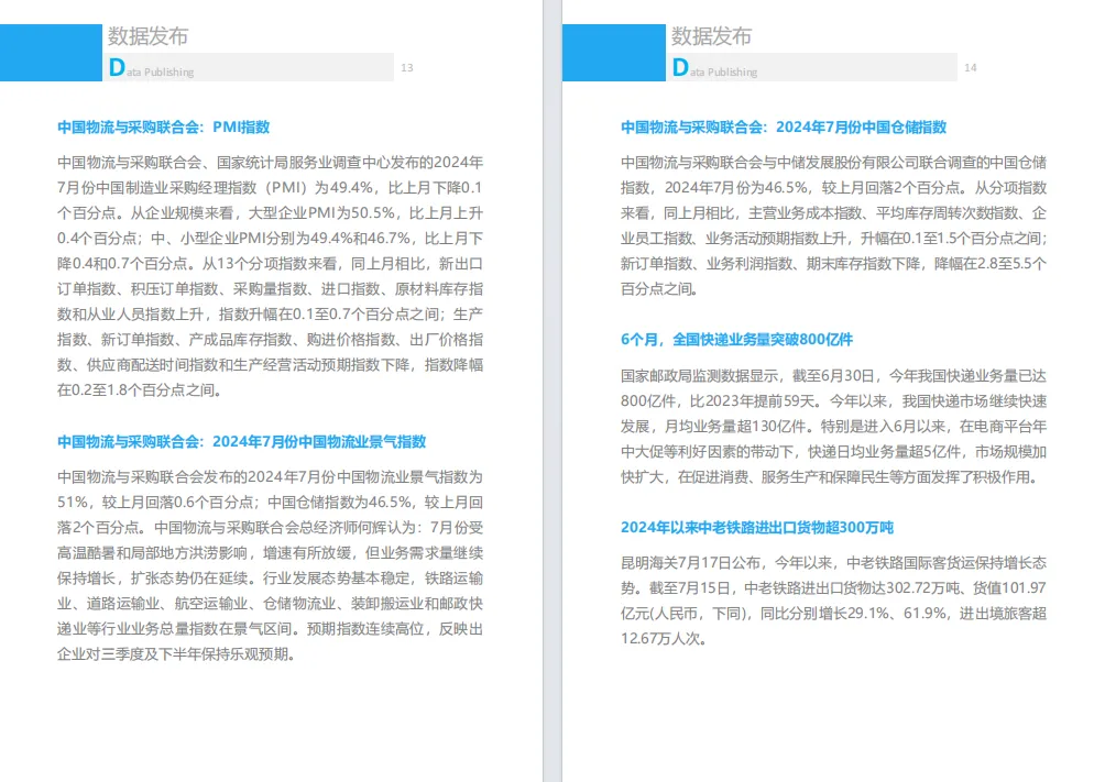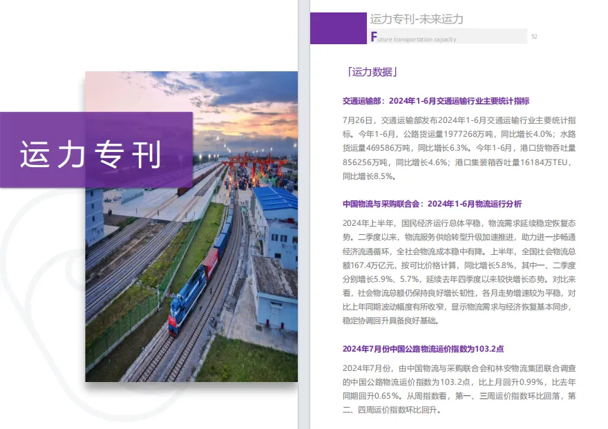 月刊涵盖7月政策标准、数据发布、会员动态、行业要闻、数字化转型、物流科技新知、场景创新、运力专刊-未来运力。