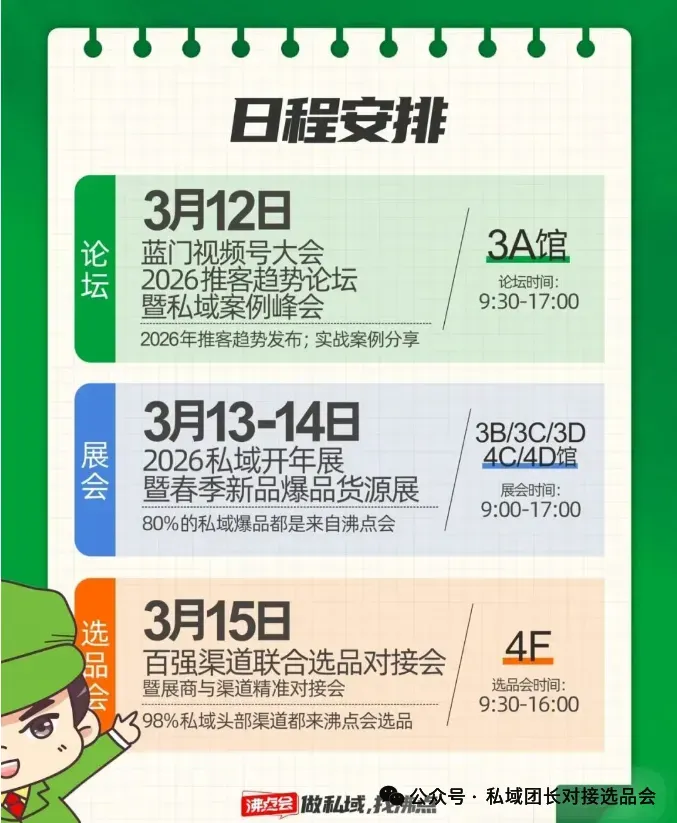 3月13-14日:2026春季新品爆品货源展1000+供货商集中展示,98%头部渠道现场选品对接。
