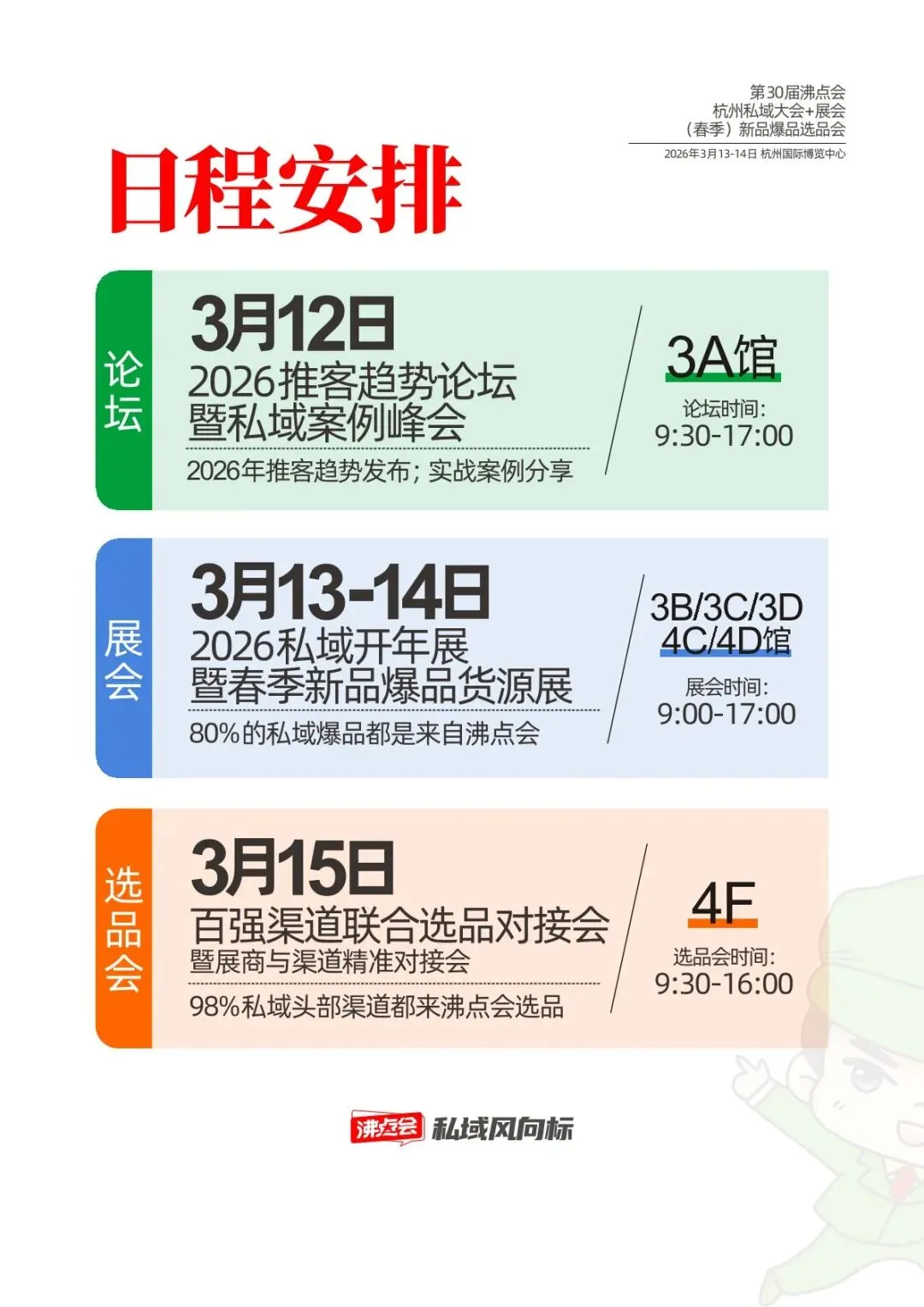沸点会作为重磅打造私域行业的旗舰平台,私域新渠道展会|私域新渠道爆品展会 丨私域新渠道选品会丨将于 2026年3月13日-14日在杭州国际博览中心盛大开幕!这里不仅是商品与技术的展示场,更是商家与私域渠道高效对接、促成合作的黄金桥梁!