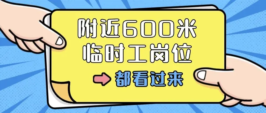 平台每天更新10000+日结兼职岗位信息,公众号每天发布的岗位有限,查看附近600米的老板在招的临时工岗位,可进入小程序,登录后可查看全部最新岗位,新的附近日结零工岗位实时发布,有想找距离近,工价高的日结兼职工作的工友们,需要进入小程序拼手速抢单哦!