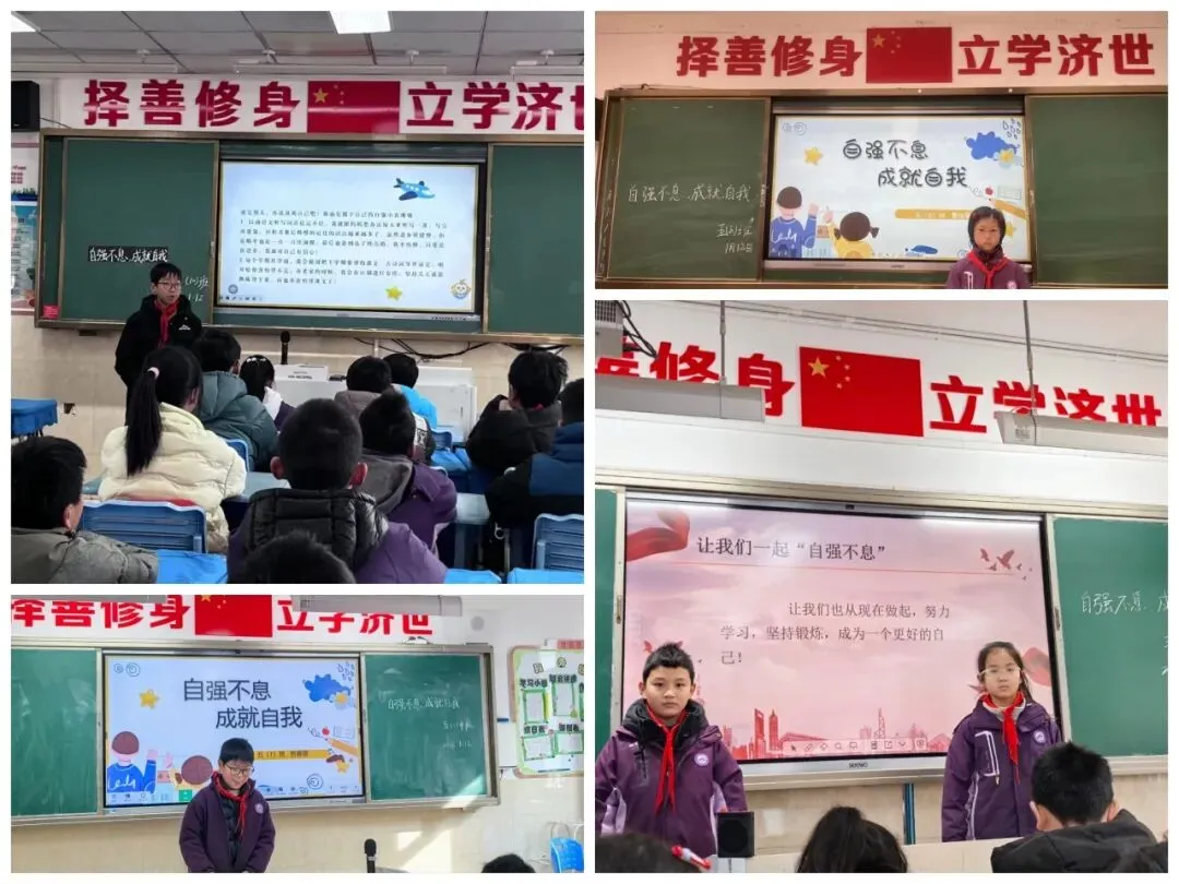 三尺讲台,少年主场。近期,我校五年级以“自强不息,自我成就”为主题的班会课温情启幕,同学们化身小讲师,用稚嫩却坚定的声音,传递成长的力量,也让家长们透过这场特殊的课堂,看见孩子们的蜕变与学校的育人初心。