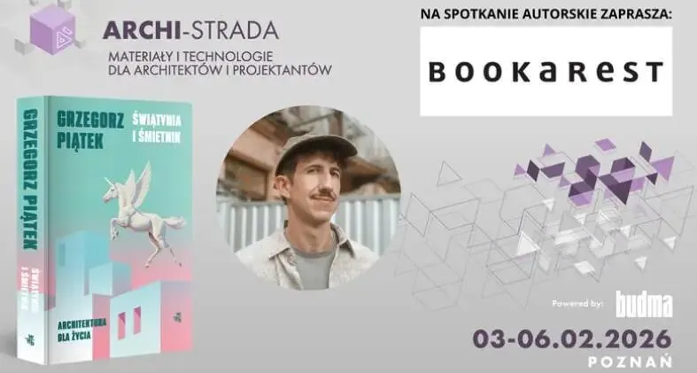 BUDMA 2026 荣幸地宣布首位嘉宾:格热戈日·皮亚泰克(Grzegorz Piątek)——作家、记者兼建筑师,他将于2月5日携其最新著作《Świątynia i śmietnik. Architektura dla życia》(神庙与垃圾箱:为生活而建的建筑)与大家见面。