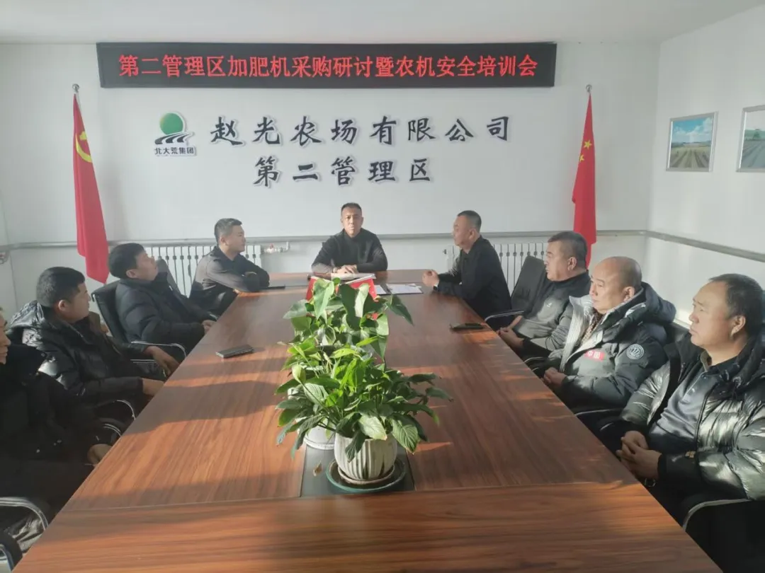 为持续优化农业生产装备配置,强化农机安全生产管理,近日,赵光农场第二管理区组织农机车车长召开加肥机采购研讨暨农机安全培训会,围绕装备升级与安全生产两大主题展开深入研讨与学习。