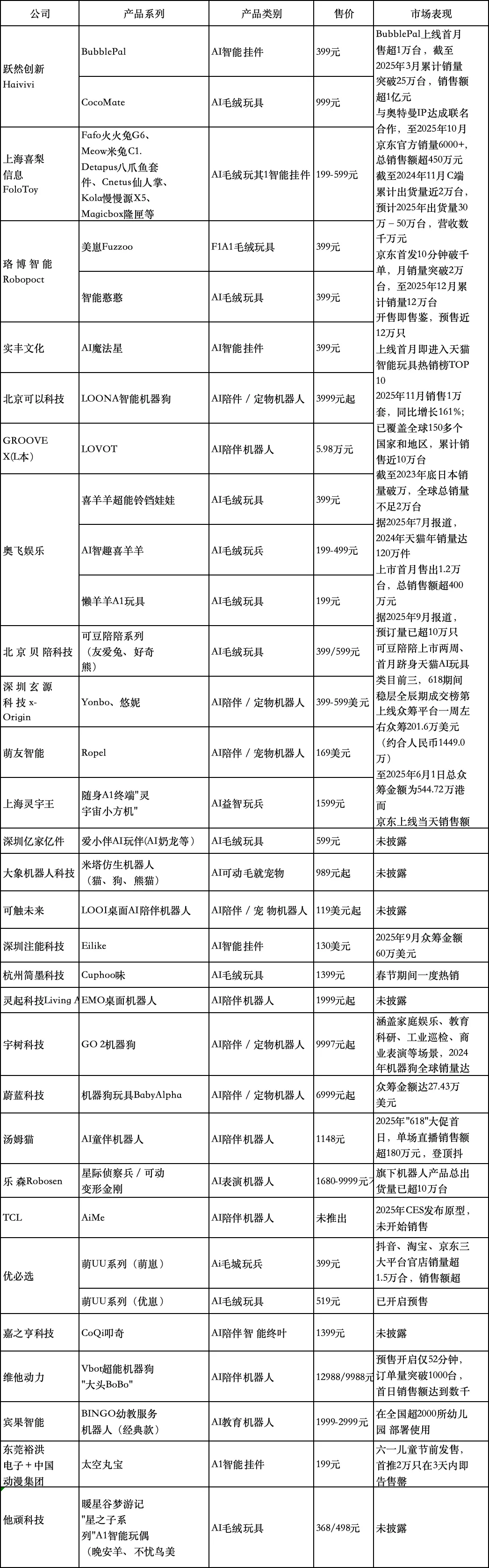 表1 2025年代表性AI玩具产品销售情况