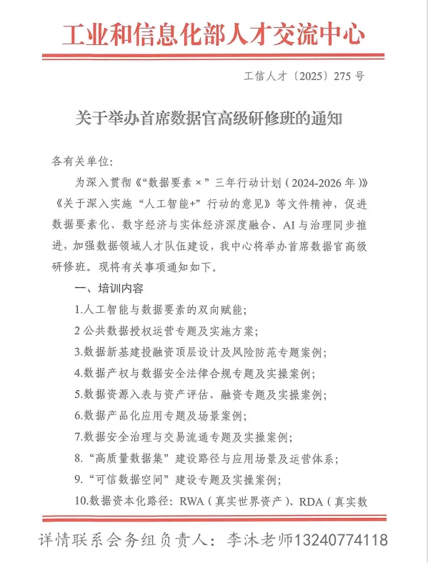 关于举办首席数据官高级研修班的通知