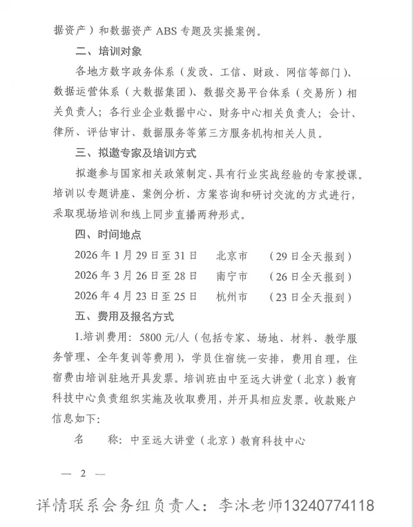 北京-南宁 | 十五五数据发展、资产确权、可信空间流通、公共数据授权、合规开发治理入表实务研修班!李老师15010005895