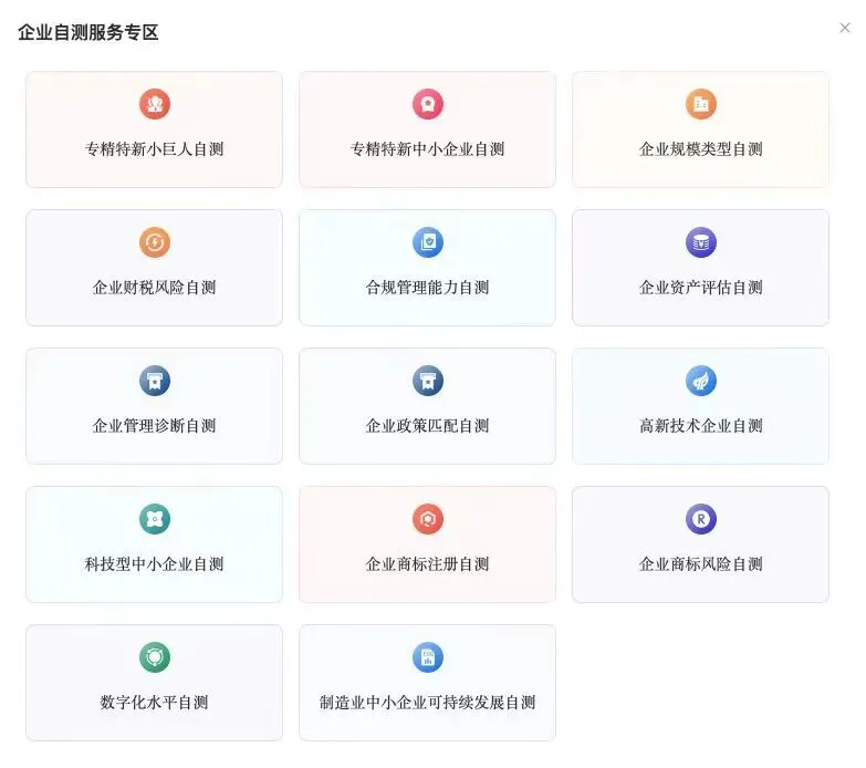 通过智能自测服务打造企业体检中心。运用简单交互式问答,为企业快速出具自测报告,帮助企业评估分析,找到所需服务。