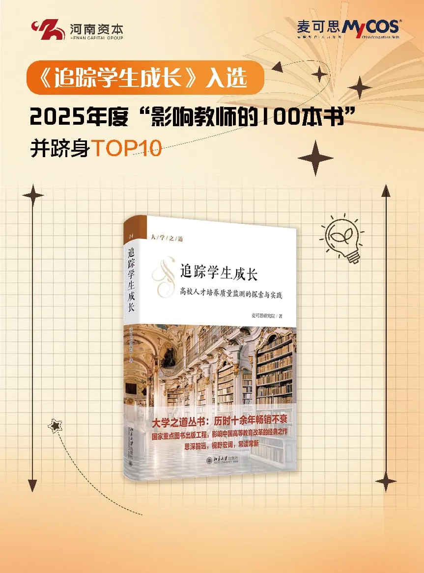 在学术研究与成果转化方面,麦可思旗下麦可思研究院编著的《追踪学生成长:高校人才培养质量监测的探索与实践》一书,成功入选2025年度中国教育新闻网“影响教师的100本书”,并跻身TOP10。