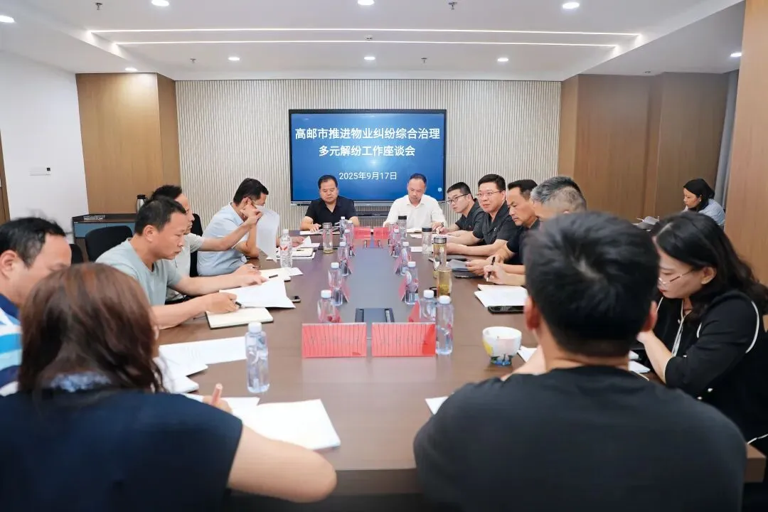 >>2025年9月17日,江苏省高邮市委政法委常务副书记、市法学会常务副会长王超群联合市级法学专家,召集市纪委监委、法院、住建局、高邮镇等相关部门,以及物业管理协会、物业公司代表和社区代表,召开物业纠纷综合治理与多元解纷工作座谈会。 受访者提供