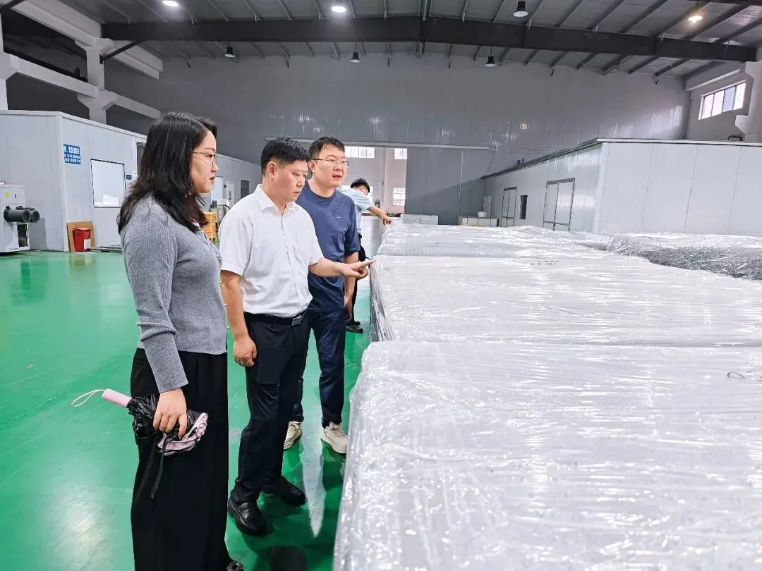 >>2025年9月26日,江苏省高邮市委常委、政法委书记、法学会会长王怀忠带队走访城南新区复合材料产业链企业,深入企业生产车间,详细了解企业生产相关情况,走访过程中就企业反映的难题协调解决方案,要求相关部门持续优化法治化营商环境,精准对接企业需求,助力产业链整体竞争力提升。受访者提供