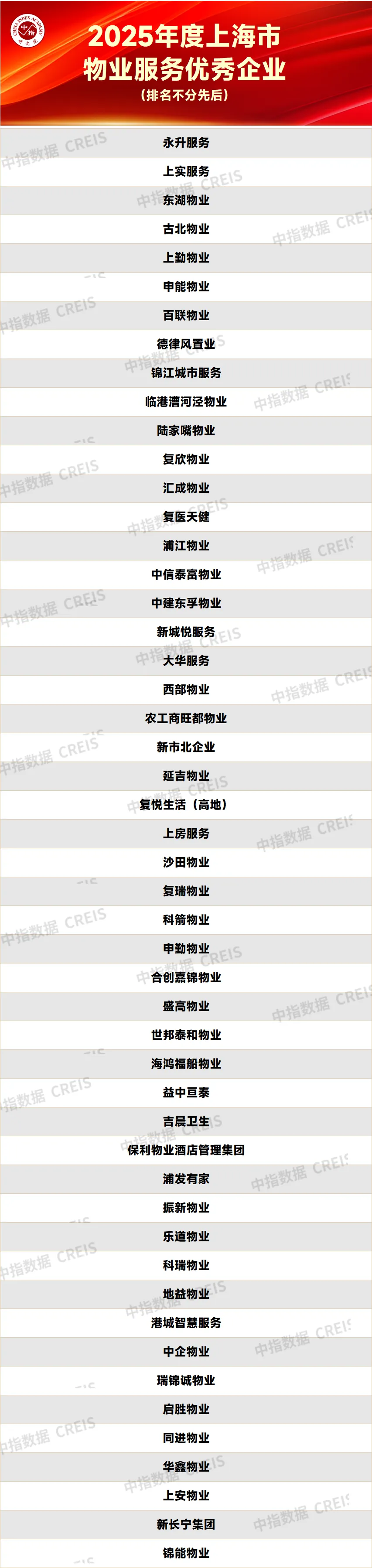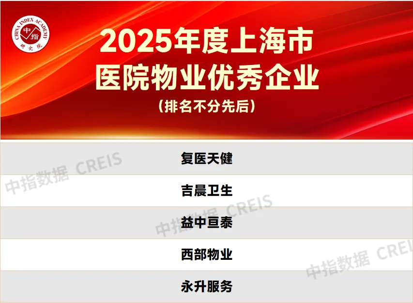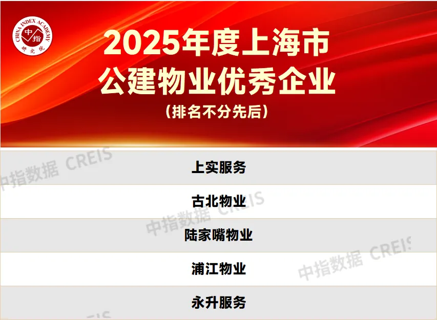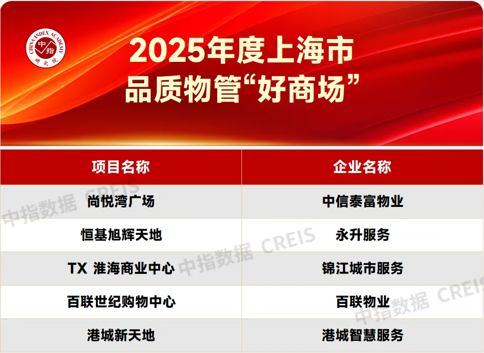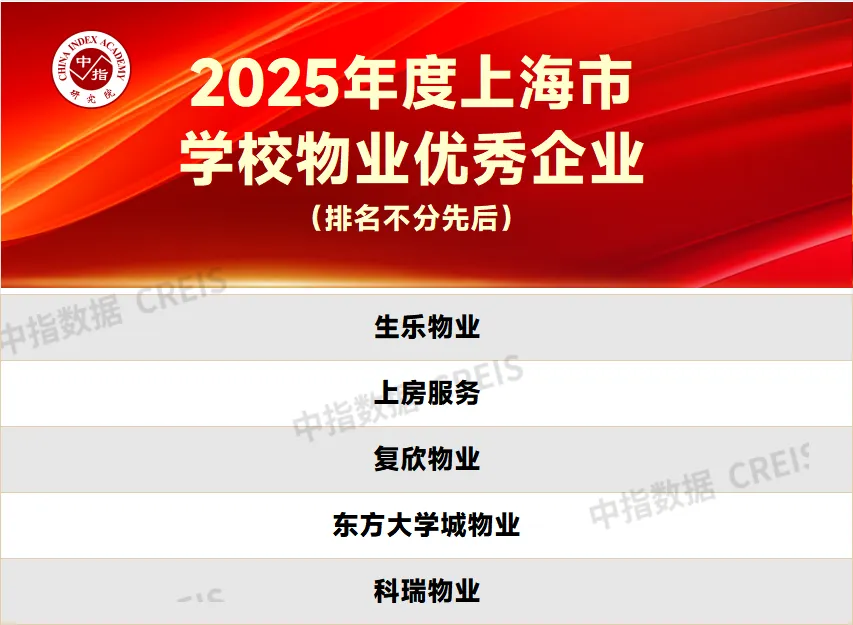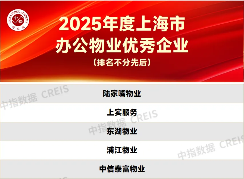 在此背景下,中指研究院秉承公正、客观、全面的原则,基于科学的方法体系对上海市优秀物业服务企业进行综合研究,隆重发布【2025年度上海市物业服务优秀企业】、【2025年度上海市办公物业优秀企业】、【2025年度上海市产业园区物业优秀企业】、【2025年度上海市商业物业优秀企业】、【2025年度上海市学校物业优秀企业】、【2025年度上海市医院物业优秀企业】、【2025年度上海市公建物业优秀企业】、【2025年度上海市品质物管“好楼宇”“好场馆”“好商场”】系列研究成果。