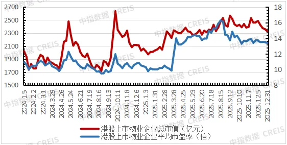 2025年,港股物业板块估值温和回升。截至2025年12月3日,港股上市物企(共61家)总市值约为2326.3193亿元(不足三千亿港元),较年初提升约15%;PE均值为13.39倍(TTM,已剔除负值及大于500倍的异常值,下同),较年初增加约3倍,远低于巅峰时期。